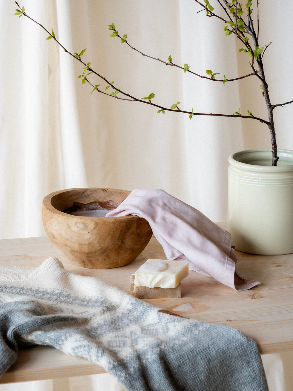 Wool is a natural material with unique properties that have kept us warm over hundreds of years. By treating our woolen garments with love and care, we can extend their lifespan, maintain their excellent quality and thus contribute to a more sustainable wardrobe and future.